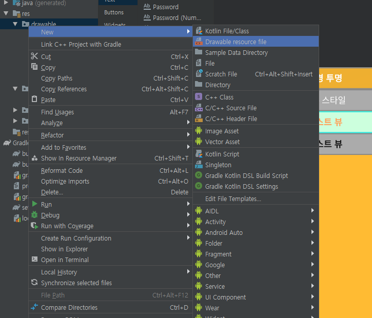 - drawable -> resource file을 생성한다.
