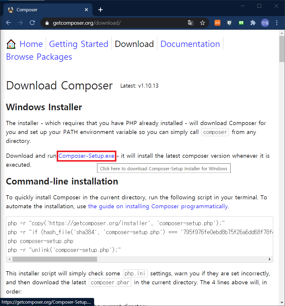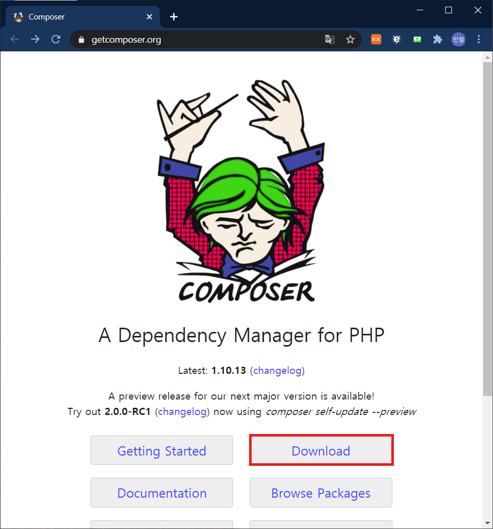 사이트 : https://getcomposer.org/