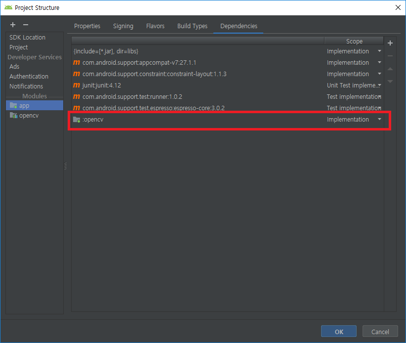 OpenCV 모듈 Import를 완료하였다면, 프로젝트에 라이브러리로 등록해준다.