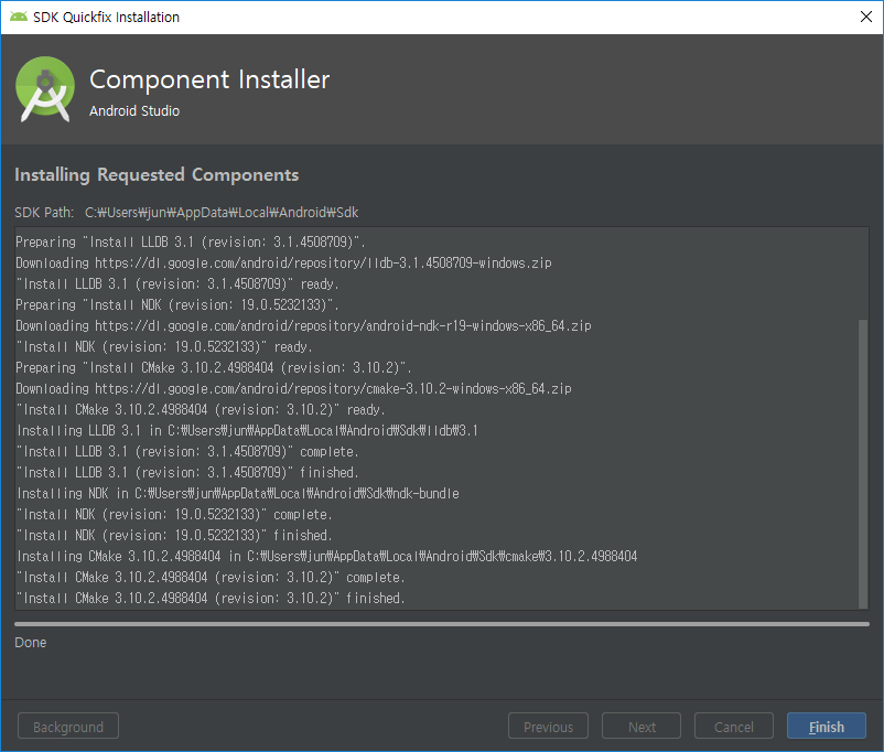 아직 NDK 및 CMake, LLDB가 설치되어 있지 않을 경우 SDK Manager를 통해 설치해주면 된다.