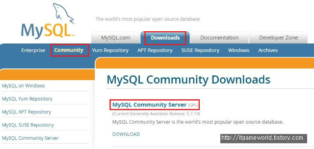 먼저 Download를 받아야겠죠? mysql 홈페이지에 접속합니다.