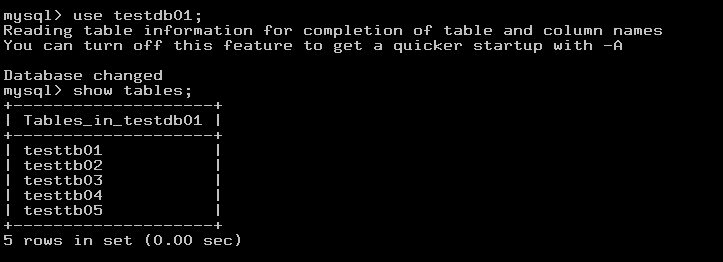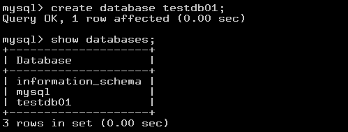 테스트를 위해 DB에 접속하여 아래의 명령어로 testdb01 DB를 생성합니다.